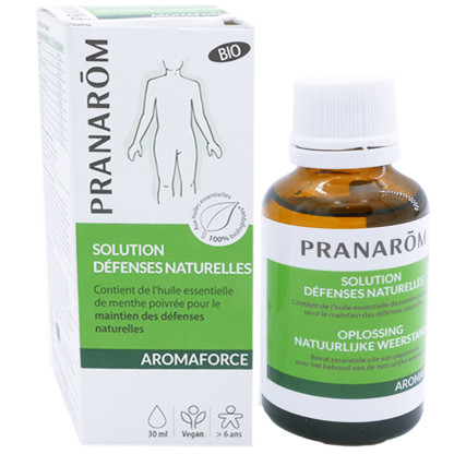 PRANAROM Aromaforce BIO Défenses naturelles discount, un concentré d'huiles essentielles dans votre parapharmacie en ligne à prix discount à base de menthe poivrée qui contribue aux défenses naturelles de l'organisme