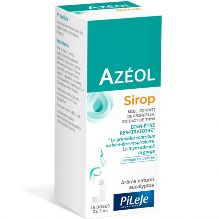 AZEOL Sirop Bien-être respiratoire de PILEJE, le complément alimentaire dans votre parapharmacie en ligne à prix discount, à base de Grindelia qui contribue au bien être respiratoire. A partir de 12 ans