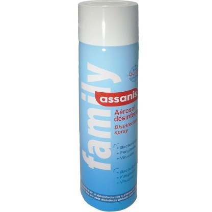 ASSANIS Family Aérosol désinfectant discount, un spray assainissant pour l’intérieur de la maison dans votre parapharmacie en ligne à prix discount, purifier l’air ambiant, éliminer les microbes, virus, acariens, et odeurs désagréables.