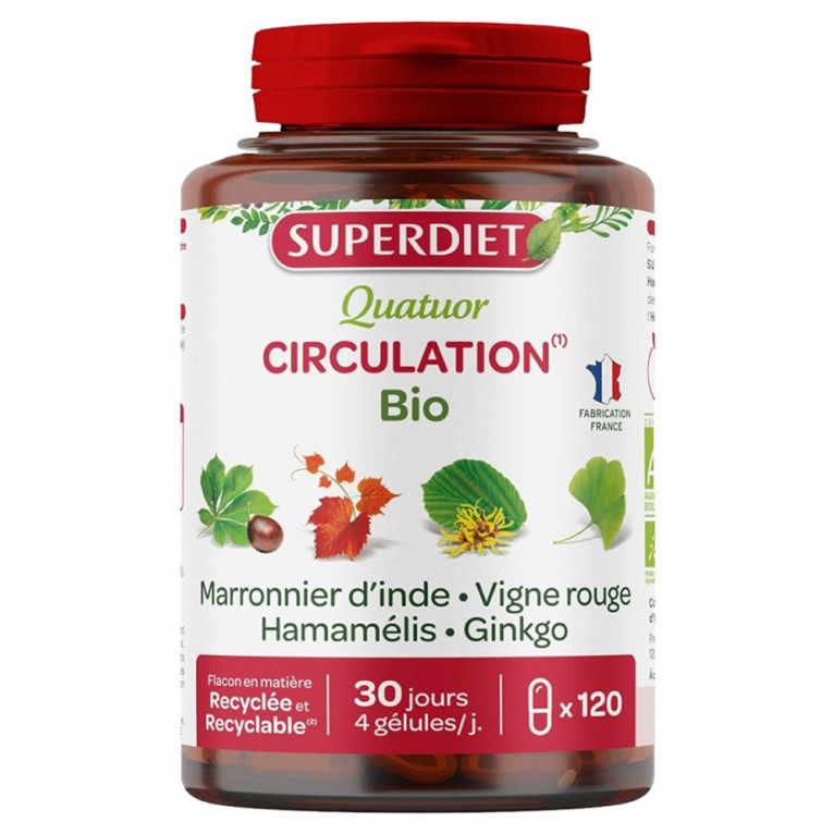 Quatuor circulation 120 gélules de SUPERDIET, est un complément alimentaire à base de plantes, dans votre parapharmacie en ligne à prix discount.