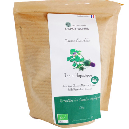 TISANE BIEN-ÊTRE Tonus Hépatique Bio discount du Comptoir de l’Apothicaire, l’essentiel de la nature à base de plantes en vrac, à prix discount dans votre parapharmacie en ligne.