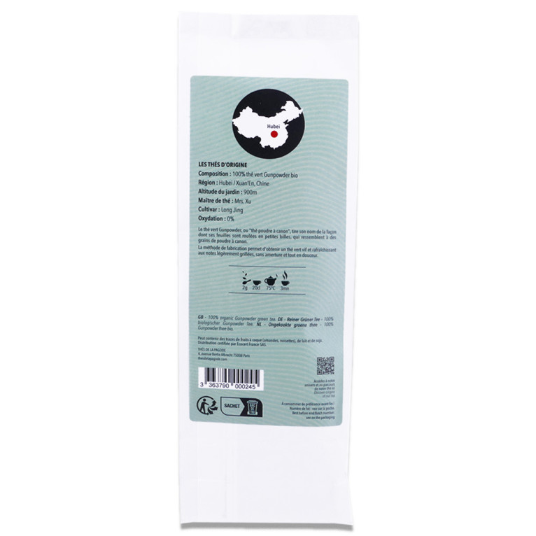 Ce produit contient des feuilles de thé vert issues de l'agriculture biologique, riches en antioxydants et en polyphénols. Originaire de la province du Zhejiang en Chine, le Thé Vert Cru Naturel est une variété exceptionnelle de thé vert connue sous le nom de « Gunpowder » ou « poudre à canon ». Ce thé est méticuleusement roulé en petites perles qui s'épanouissent dans la théière, offrant un goût délicieux et un arôme frais et subtil. Son infusion se révèle d'une couleur dorée, à la fois digestive et rafraîchissante tout au long de la journée. Avec sa vivacité et sa délicatesse, le Gunpowder est prisé pour sa fraîcheur et ses propriétés désaltérantes.