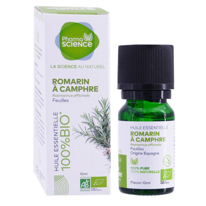 Découvrez l'huile essentielle de Romarin à Camphre Bio de la marque Pharmascience, un produit de qualité issu de l'agriculture biologique.