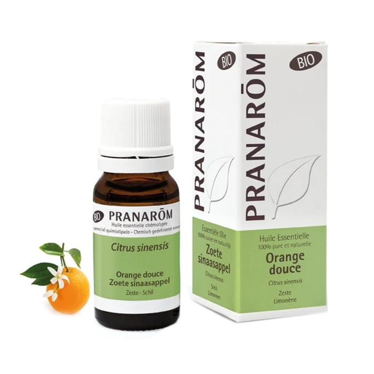 PRANAROM Huile essentielle 100% pure et naturelle d'Orange douce est une huile essentielle obtenue par expression à froid du zeste d'orange douce (Citrus sinensis) qui est le fruit d'un petit arbre de la famille des Rutacées originaire principalement de Méditerranée et des régions tropicales. Elle s'utilise aussi bien par voie orale sur un support neutre, qu'en diffusion.