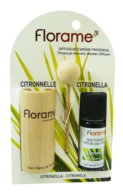 La gamme Diffusion de FLORAME est composée de produits à base d’huiles essentielles à diffuser et de diffuseurs pour parfumer l’intérieur de l’habitat.Le diffuseur permet de parfumer l’air ambiant et de le purifier par capillarité dans la boule en bois et diffusion avec les huiles essentielles bio de citron aux senteurs toniques et stimulantes.Très utile et apprécié aux beaux jours, il éloignera les insectes, notamment les moustiques. La diffusion des huiles essentielles se fait pendant 3 semaines environ. Pratique par son petit format et discret, il peut s’utiliser n’importe où (voiture, bureau,…) en se posant ou en se collant.