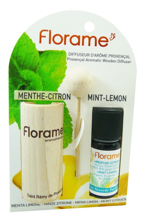 Diffuseur d’arômes provençal à la Menthe Citron de FLORAME, le petit diffuseur pratique pour parfumer son intérieur (bureau, pièce de maison, voiture, placard,…) en toute discrétion.