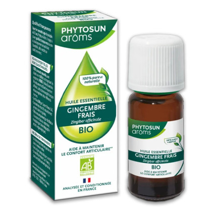 PHYTOSUN AROMS Huile essentielle Gingembre Frais Bio Confort articulation Souplesse et mobilité des articulations discount, une huile essentielle 100% pure et naturelle en complément alimentaire dans votre parapharmacie en ligne à prix discount.