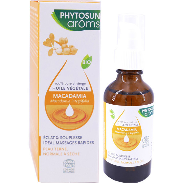 L’huile végétale Macadamia BIO discount de PHYTOSUN AROMS, une huile pour une peau qui retrouve éclat et souplesse, dans votre parapharmacie en ligne à prix discount.