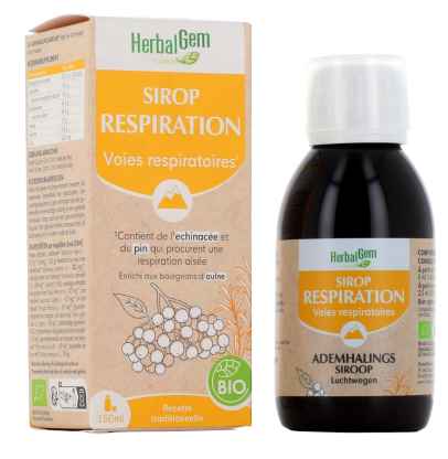 Sirop Respiration BIO d'HERBALGEM Bronches, pour toute la famille, complément alimentaire bio en solution buvable dans votre parapharmacie en ligne à prix discount.