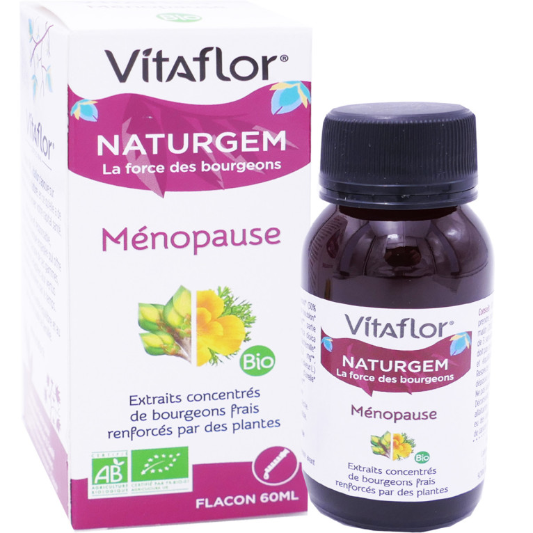 NATURGEM MENOPAUSE de VITAFLOR, des bourgeons dans un complément alimentaire Bio, sous forme de flacon, dans votre parapharmacie en ligne à prix discount.