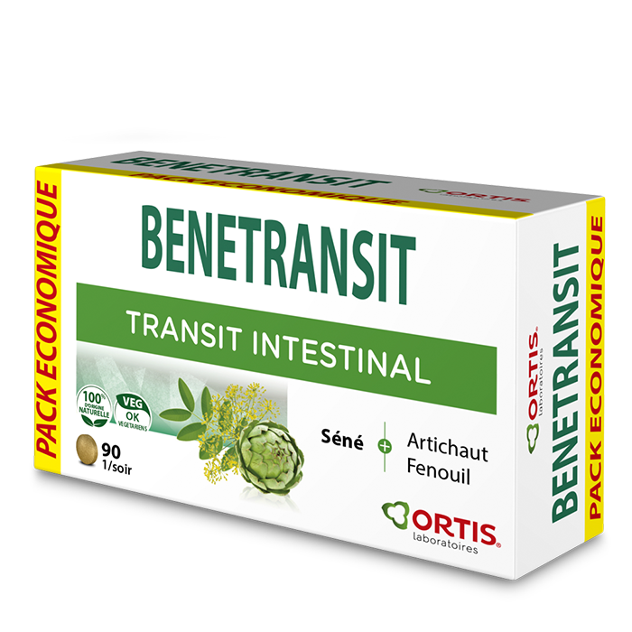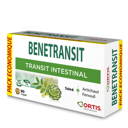 BENETRANSIT Transit Intestinal des laboratoires ORTIS, un complément alimentaire conditionné sous forme de comprimés à base de plantes dont le séné qui favorise le confort intestinal, disponible dans votre parapharmacie en ligne à prix discount.
