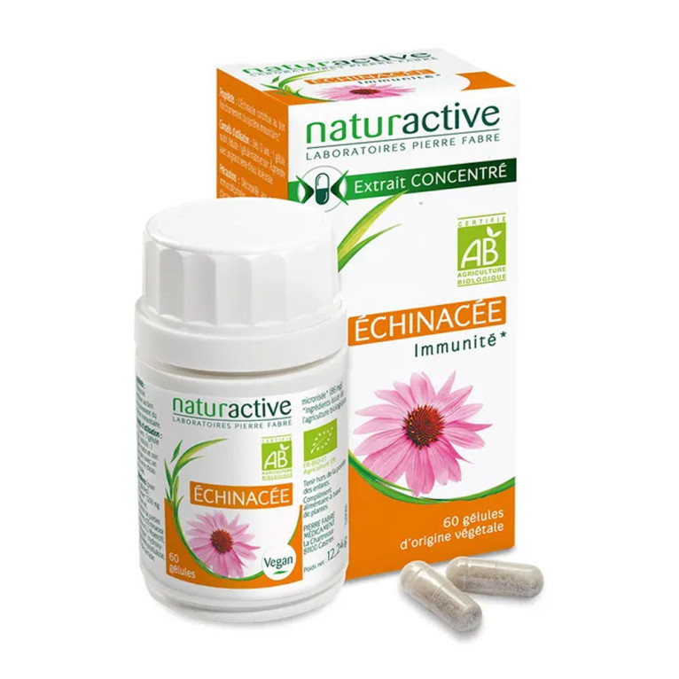 ÉCHINACÉE Bio Immunité de NATURACTIVE, un complément alimentaire à base d'échinacée pourpre qui contribue au fonctionnement normal des défenses de l’organisme dans votre parapharmacie discount en ligne. 60 gélules.