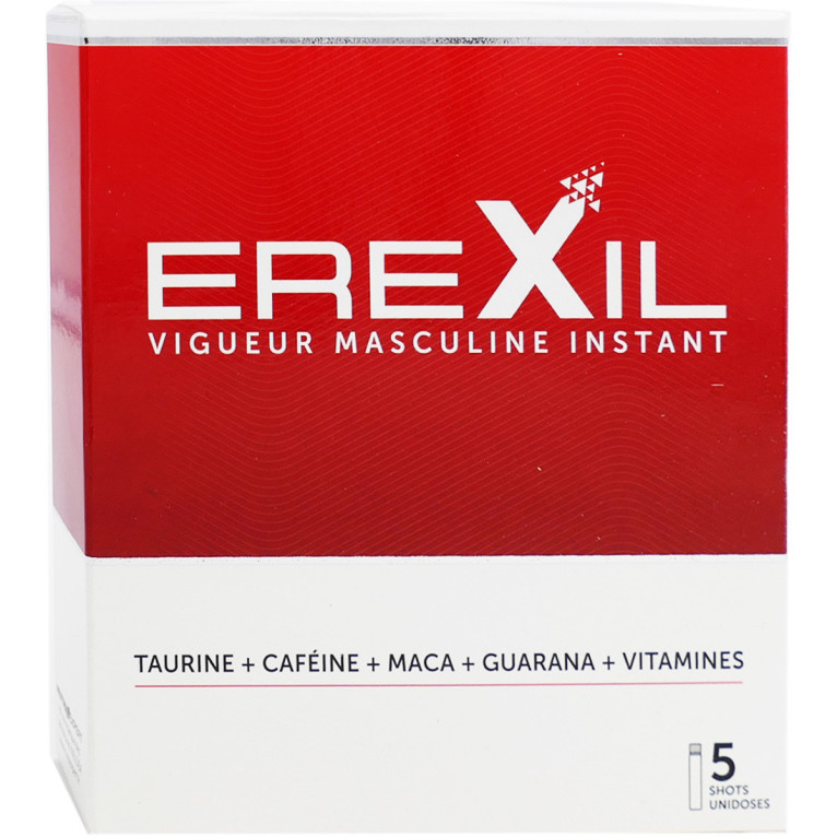 EREXIL est un complément alimentaire spécialement formulé pour les hommes sous forme d’unidoses à boire. Il contient des extraits de plantes et des vitamines. Le guarana maintient la vitalité physique et mentale ; la maca favorise le désir sexuel et soutient la performance physique et mentale ; les vitamines complètent la formule pour contribuer à réduire la fatigue. Sans gluten - Vegan