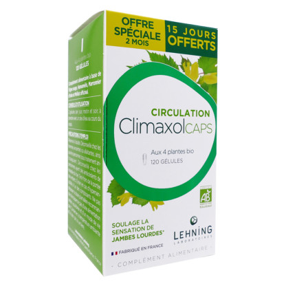 LEHNING BIO CLIMAXOLCAPS CIRCULATION 120 GÉLULES en vente en ligne, sur le site de votre parapharmacie à prix discount, est un complément alimentaire spécialement conçu lors de sensation de jambes lourdes et fatiguées.