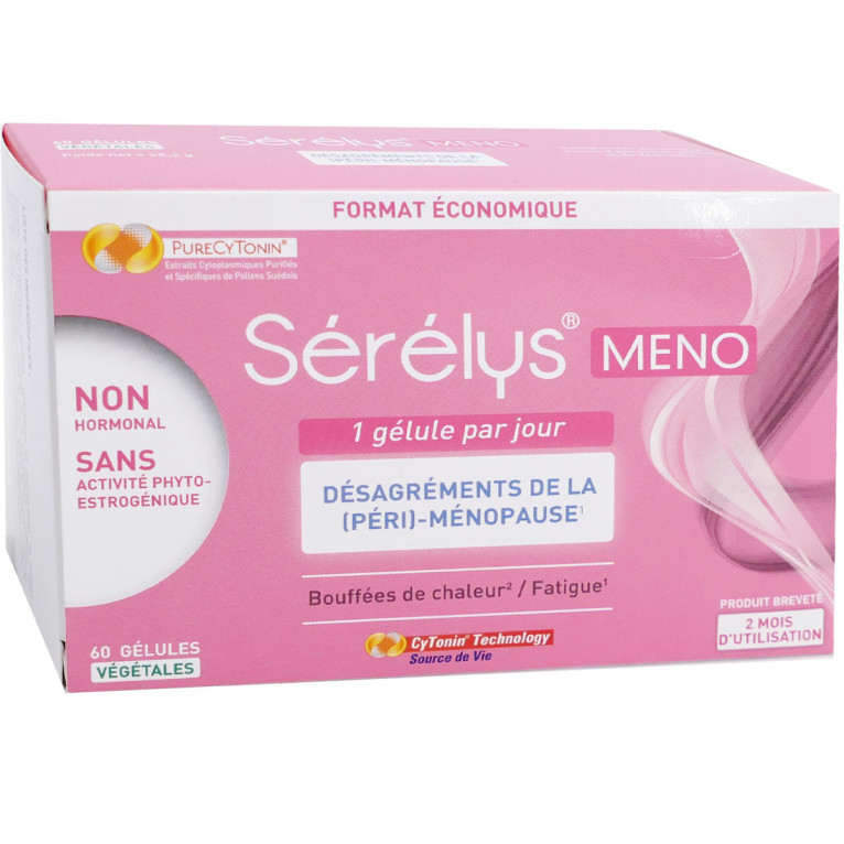SERELYS Meno discount, le complément alimentaire conditionné sous forme de gélules végétales, destiné aux femmes ayant des désagréments pendant la péri-ménopause et ménopause, disponible dans votre parapharmacie en ligne à prix discount.