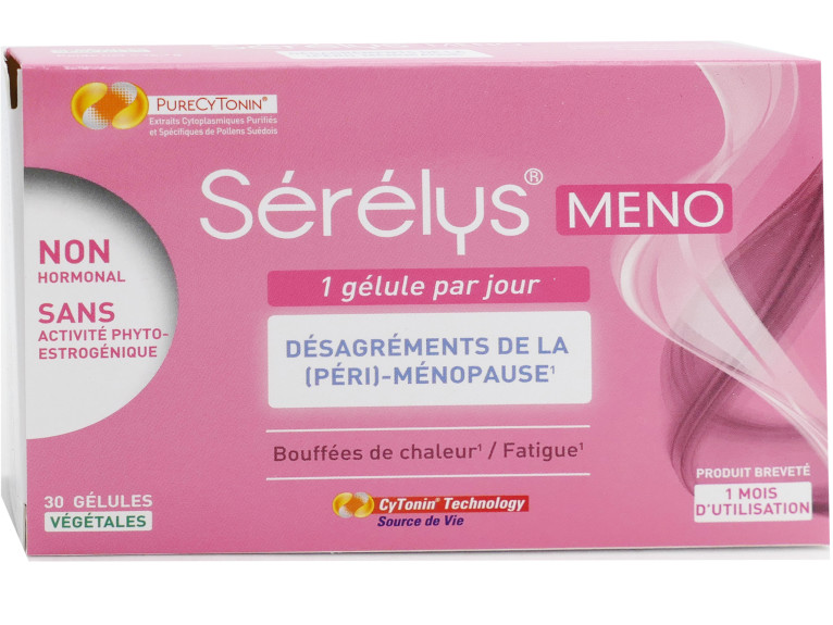 SERELYS Meno discount, le complément alimentaire conditionné sous forme de gélules végétales, destiné aux femmes ayant des désagréments pendant la péri-ménopause et ménopause, disponible dans votre parapharmacie en ligne à prix discount.