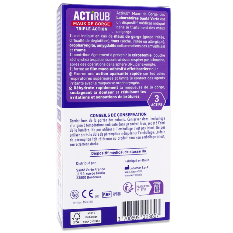 ACTIRUB PASTILLES MAUX GORGE TRIPLE ACTION 20 PASTILLES est disponible en vente en ligne à prix discount sur Pharmashopdiscount.