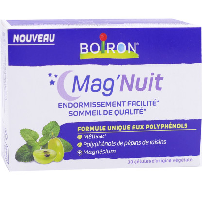 MAG’NUIT à prix discount des laboratoires BOIRON, le complément alimentaire conditionné sous forme de gélules d'origine végétale disponible dans votre parapharmacie en ligne à prix discount.
