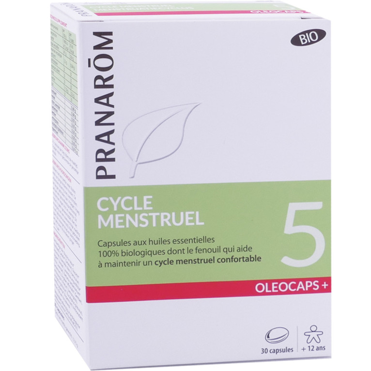 Oleocaps+ N°5 Cycle Menstruel du laboratoire Pranarôm à prix discount dans votre parapharmacie en ligne, pour diminuer les sensations d’inconfort et les gênes liées à la période des règles.