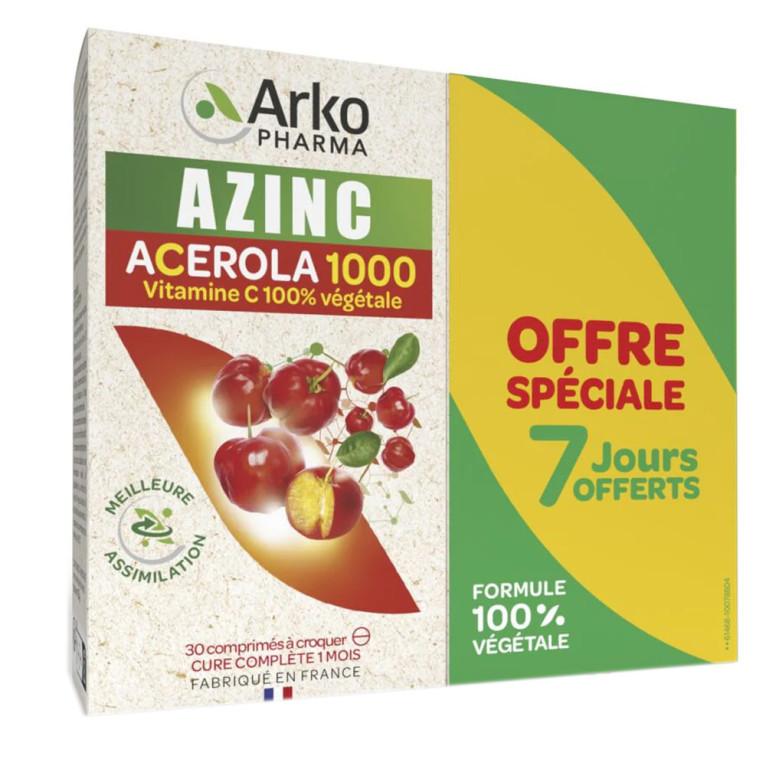 ARKOPHARMA AZINC ACEROLA 1000 LOT DE 2X30 COMPRIMES A CROQUER
