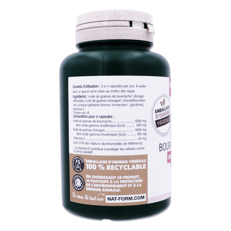 Huiles de Bourrache et Onagre de Nat&Form, le complément alimentaire disponible dans votre parapharmacie en ligne à prix discount.