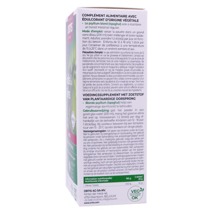 Il contient un complexe Transiplus® enrichi en fibres, notamment du psyllium blond (ispaghul) et de l'extrait de magnolia. Le psyllium blond contribue à un bon transit intestinal, tandis que l'extrait de magnolia participe au maitien de la régularité intestinale.
