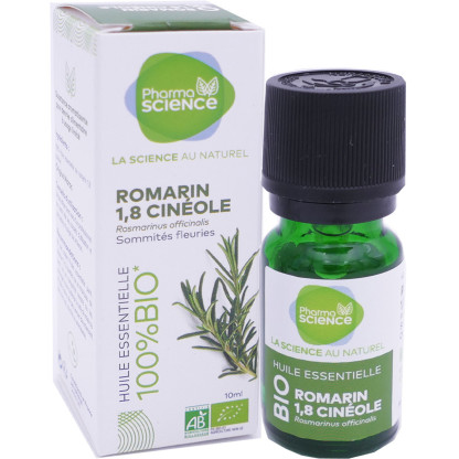 Romarin 1,8 Cinéole BIO du laboratoire PHARMASCIENCE, une huile essentielle composée de plantes, en compte-gouttes, dans votre parapharmacie en ligne à prix discount.