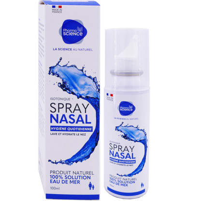 Spray Nasal Hygiène quotidienne discount de PHARMASCIENCE, toutes les propriétés de l’eau de mer, dans une solution nasale pour une hygiène quotidienne des fosses nasales de toute la famille, dans votre parapharmacie en ligne à prix discount.