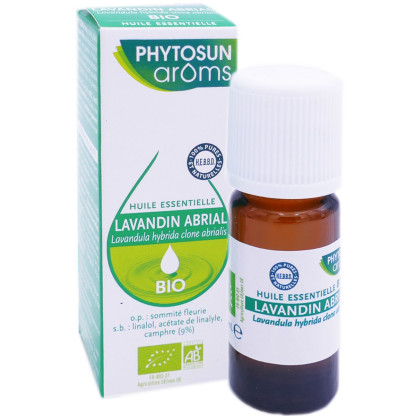 Phytosun arôms est la marque experte en aromathérapie, qui développe depuis plus de 20 ans des huiles HEBDD (Huiles Essentielles Botaniquement et Biochimiquement Définies) de très haute qualité, soumises à des contrôles pharmaceutiques extrêmement rigoureux, pour offrir le meilleur de la nature aux consommateurs soucieux de leur confort et leur bien-être. L'huile essentielle de Lavandin Abrial bio est originaire de France, 100% pure et naturelle elle est utilisée comme décontractant musculaire, répulsif anti-poux, pour favoriser la détente et l’endormissement ou encore pour redonner à la peau toute sa beauté.