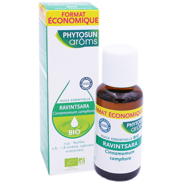 Huile essentielle Ravintsara, l'huile essentielle 100 % pure et naturelle des laboratoires Phytosun aroms dans votre parapharmacie en ligne à prix discount.