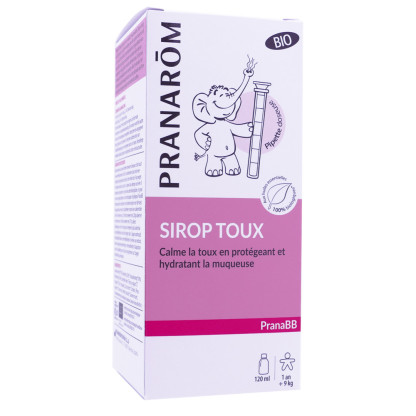 PRANAROM PRANABB BIO SIROP TOUX 120ML est un sirop doux et apaisant pour les enfants, en vente en ligne sur le site de votre parapharmacie à prix discount. Formulé à partir de 4 huiles essentielles 100% bio et de miel d'acacia, il offre une approche naturelle pour le confort de vos petits lors de toux.