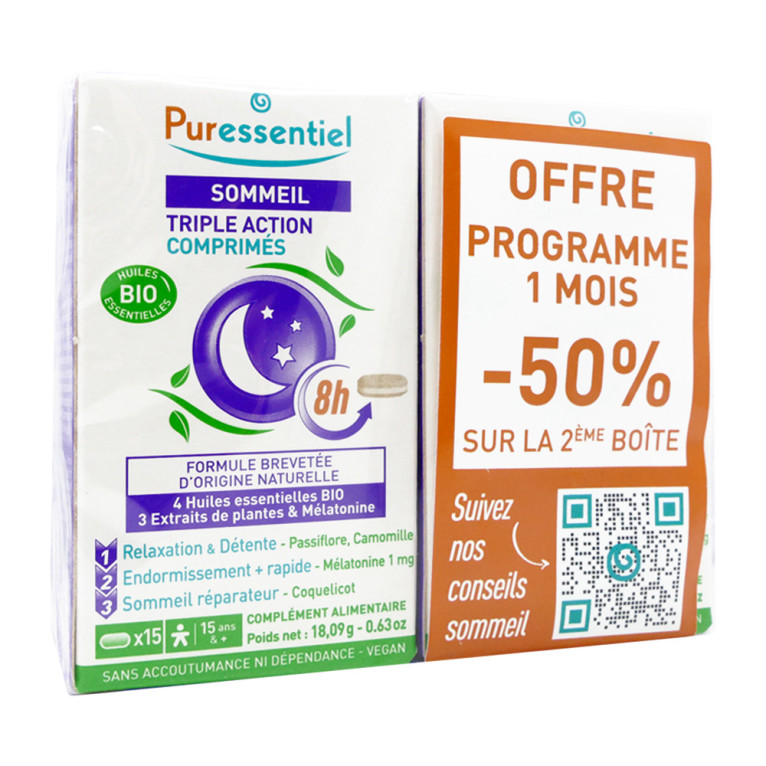 PURESSENTIEL SOMMEIL TRIPLE ACTION LOT DE 2X15 COMPRIMES
