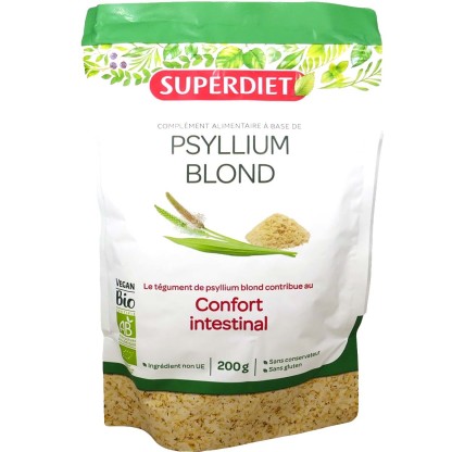 PSYLLIUM BLOND Bio en poudre de SUPERDIET pas cher, les bienfaits de ce tégument dans votre parapharmacie en ligne à prix pas cher, pour réguler le transit intestinal.