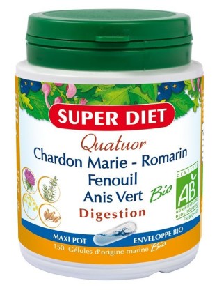 QUATUOR BIO Digestion de SUPER DIET, le complément alimentaire conditionné sous forme de gélules, dans votre parapharmacie en ligne pas chère.