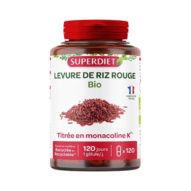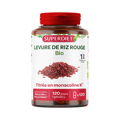 SUPERDIET LEVURE DE RIZ ROUGE bio discount, le complément alimentaire sous forme gélules à base de levure de riz rouge BIO, dans votre parapharmacie en ligne à prix discount.