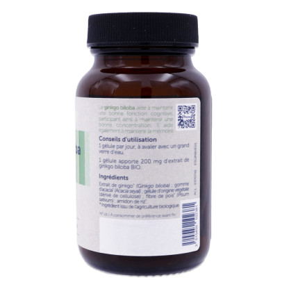 Pour 1 gélule : Extrait de ginkgo biloba bio : 200mg