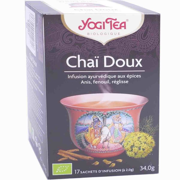 YOGI TEA Chaï Doux discount, l’infusion ayurvédique au délicieux mélange d’épices naturelles, dans votre parapharmacie en ligne à prix discount.