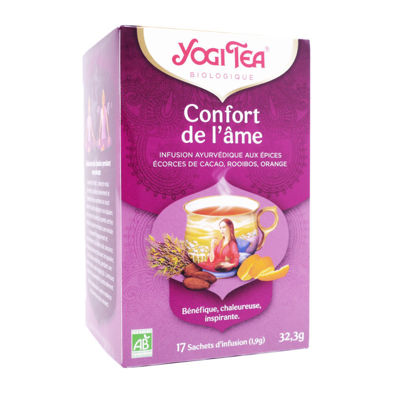 YOGI TEA INFUSION CONFORT DE L'ÂME 17 SACHETS : Découvrez cette infusion apaisante en vente en ligne, sur le site de votre parapharmacie à prix discount, pour un moment de sérénité et de bien-être.