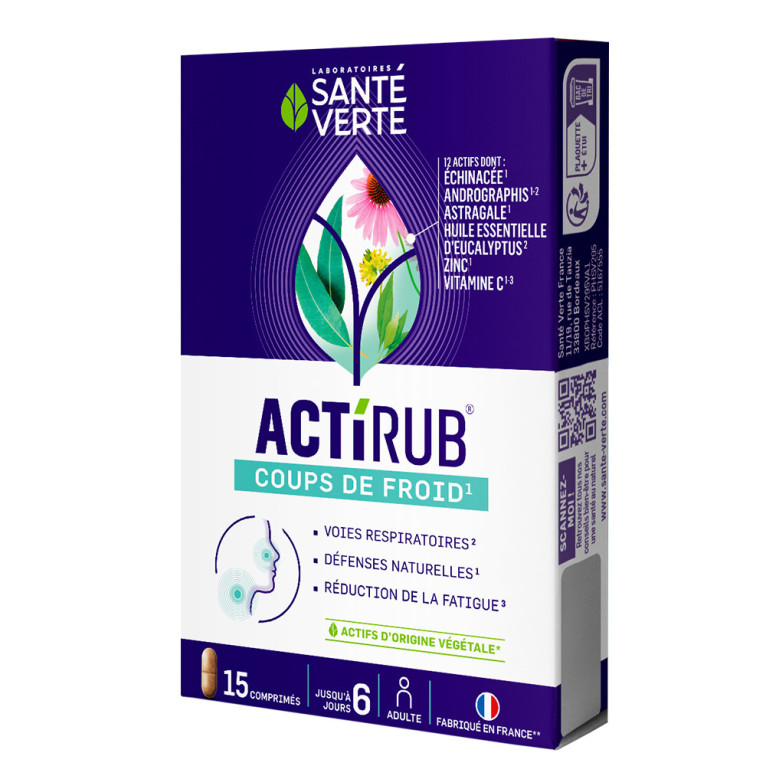 ACTIRUB à prix discount de SANTE VERTE, le complément alimentaire en comprimés à base de préparation de plantes, huile essentielle, Vitamine C, Zinc, dans votre parapharmacie en ligne.