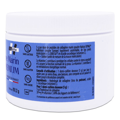 Il contient 5 g de peptides de collagène marin en poudre breveté Naticol BPMG®. Grâce à leur bas poids moléculaire, ces peptides sont hautement assimilables. De plus, ce produit est enrichi en acide ascorbique (vitamine C), qui contribue à la formation normale de collagène pour le bon fonctionnement des cartilages, des os et de la peau ; la vitamine C va également participer à la protection des cellules contre le stress oxydatif et à un métabolisme énergétique normal.
