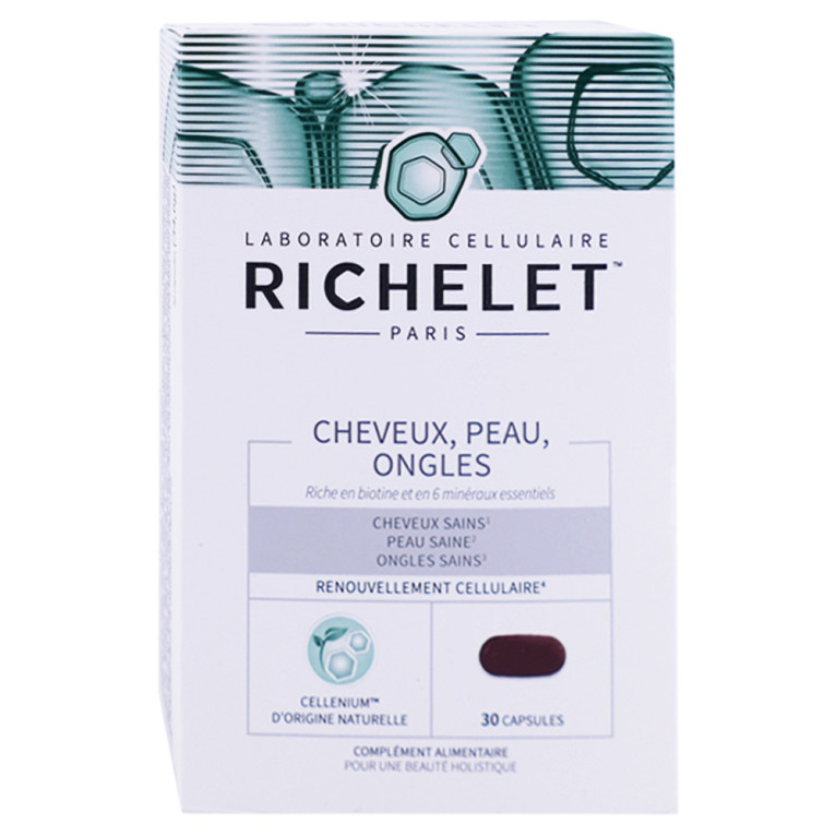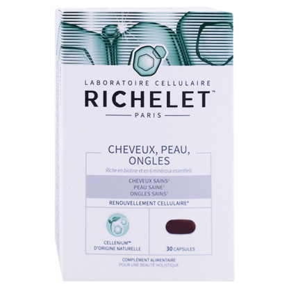 Cheveux Peau Ongles discount du laboratoire RICHELET, un complément alimentaire en capsules à base de vitamines et minéraux pour révéler la beauté naturelle, dans votre parapharmacie en ligne à prix discount.
