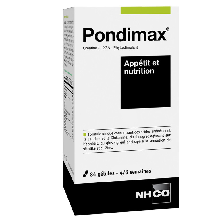 PONDIMAX Appétit et nutrition laboratoires NHCO Nutrition, un complément alimentaire à base d’acides aminés, de Ginseng et de Fénugrec qui contribue à l’appétit dans votre parapharmacie en ligne.
