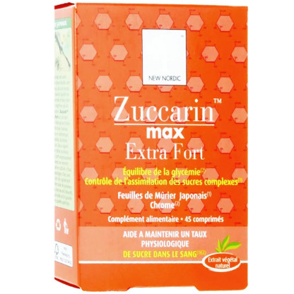 Zuccarin Max Extra Fort du laboratoire NEW NORDIC, un complément alimentaire composé de plantes, en comprimés, dans votre parapharmacie en ligne à prix discount.