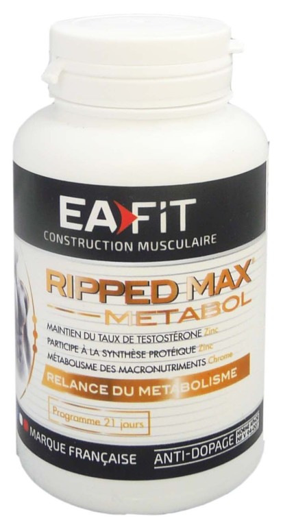 Le laboratoire EAFIT a conçu des compléments alimentaires à destination des femmes et des hommes sportifs pour améliorer les performances physiques conforme anti-dopage en partenariat avec des médecins du sport et nutritionnistes. Ripped Max Metabol d’EAFIT est un complément alimentaire sous forme de comprimés qui agit sur une action globale. Il va permettre d’augmenter la masse musculaire, activer la production naturelle de testostérone et la synthétiser pour relancer le métabolisme musculaire, brûler les graisses en augmentant la thermogénèse, et réguler les lipides et glucides dans l’organisme. Toutes ces actions se font grâce à la casaïcine qui est un principe actif du piment, au zinc, au chrome ainsi qu’à la cannelle.