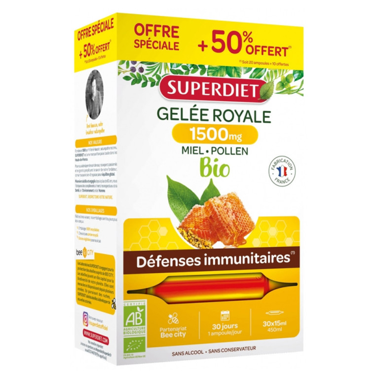 SUPER DIET GELEE ROYALE BIO 30 AMPOULES DEFENSES NATURELLES
