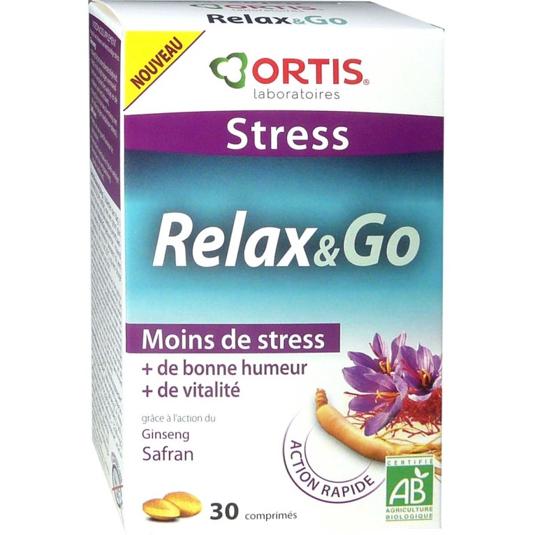 STRESS RELAX & GO Bio Programme des Laboratoires ORTIS à prix discount, un complément alimentaire en comprimés à base de Safran et de Ginseng qui contribue à la résistance au stress et aide à réduire la fatigue dans votre parapharmacie en ligne discount.
