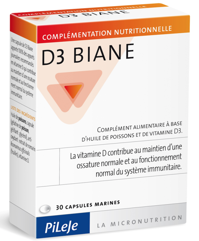 D3 BIANE du laboratoire PILEJE à prix discount, en vente dans votre parapharmacie en ligne discount, un complément alimentaire conçu à partir de vitamine D qui contribue au maintien d’une ossature normale et au fonctionnement normal du système immunitaire.