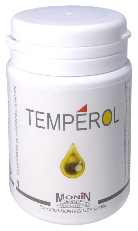 Temperol du laboratoire MONIN CHATEAUD, est un complément alimentaire à base de levure rouge de riz titrée en monacoline K, et de policosanol. TEMPEROL du laboratoire MONIN CHATEAUD apporte 2,9mg de monocaline K pour 1 comprimé par jour.
