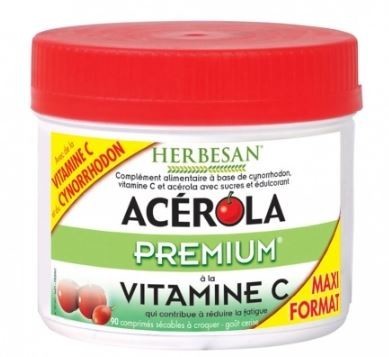 HERBESAN développe depuis plus de 40 ans des compléments alimentaires composés d’extraits de plante et d’actifs issus de la nature pour apporter une réponse naturelle à tous les besoins santé et bien-être. La gamme VITAMINES-PLANTES-PRODUITS DE LA RUCHE est composée de produits spécialement conçus pour répondre naturellement aux baisses de tonus et d'énergie. ACEROLA PREMIUM à la Vitamine C d’HERBESAN est un complément alimentaire sous forme de comprimé à croquer ou à laisser fondre. Il est composé de Cynorrhodon, fruit rouge de l’églantier, d'Acérola petit fruit d'Amérique du Sud appelée aussi "cerise des Antilles" et de Vitamine C qui participe au fonctionnement normal du système immunitaire et qui contribue à réduire la fatigue.