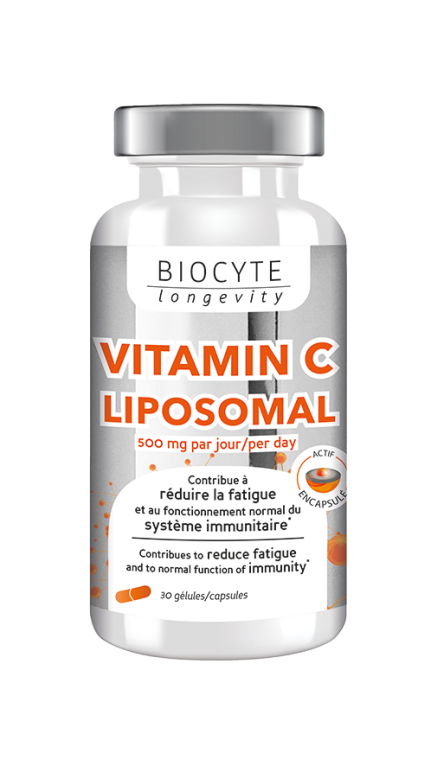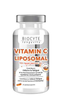 La gamme LONGEVITY de BIOCYTE à base d'ingrédients naturels et de technologies de micro-encapsulation répondent rapidement aux besoins du quotidien. Vitamine C Liposomal LONGEVITY est un complément alimentaire sous forme de gélules, composées de vitamine C qui va permettre de réduire la fatigue et de participer au fonctionnement normal du système immunitaire. Les actifs fabriqués par liposomes (micro-sphères) permettent un meilleur passage en évitant l’environnement gastrique pour être absorbé directement dans les cellules de l’organisme.